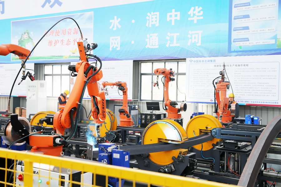 引江補漢土建8標綜合加工廠內鋼拱架自動化生產線正在作業-李明澤