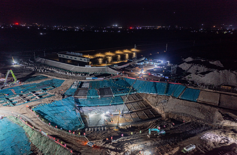2022年5月27日,中線河南段工程輝縣峪河暗渠防洪加固項目完工。圖為建管項目晝夜施工,提前完成汛前加固任務。
